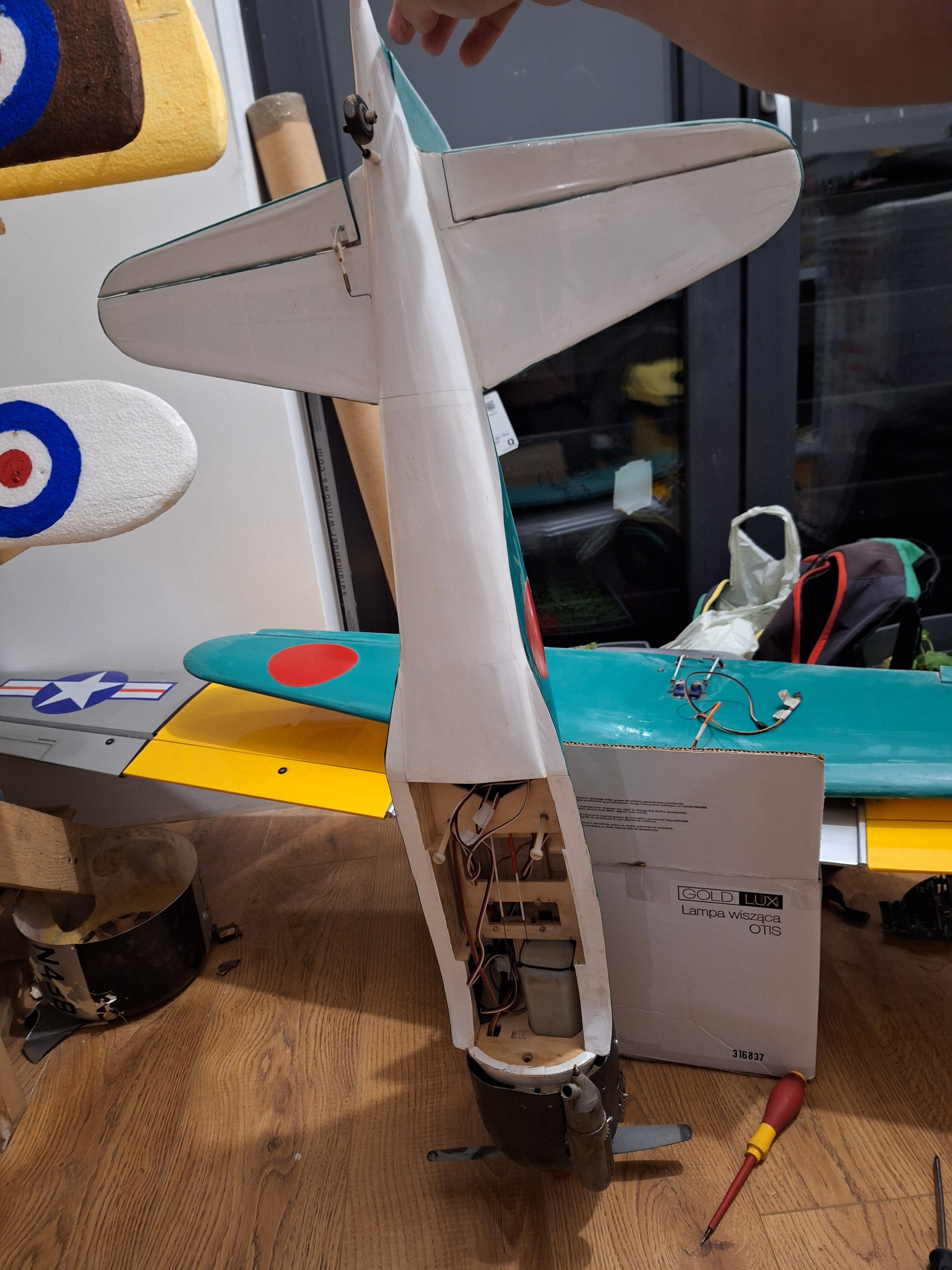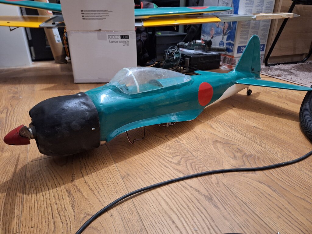Czesc, Sprzedam model dolnoplata znanego samolotu czyli mitsubishi a6m0. Model u mnie nigdy nie poleciał z powodu braku czasu także jest w stanie bardzo dobrym. Do modelu dokładam mechanizmy chowanego podwozia plus amortyzowane golenie. Wszystko elegancko dziala. Dla chętnego moge je zamontować w modelu i zrobić filmik jak dzialaja. W modelu zostawiam silnik czyli żarowy dwutakt kyosho gx40. Podrzucam filmik z moich prób z tym motorem i z tym modelem. Zostawiam również bak oraz serwa na lotkach. Cena 500 zl + przesyłka. Ponizej link do testów silnika oraz zdjęcia. -