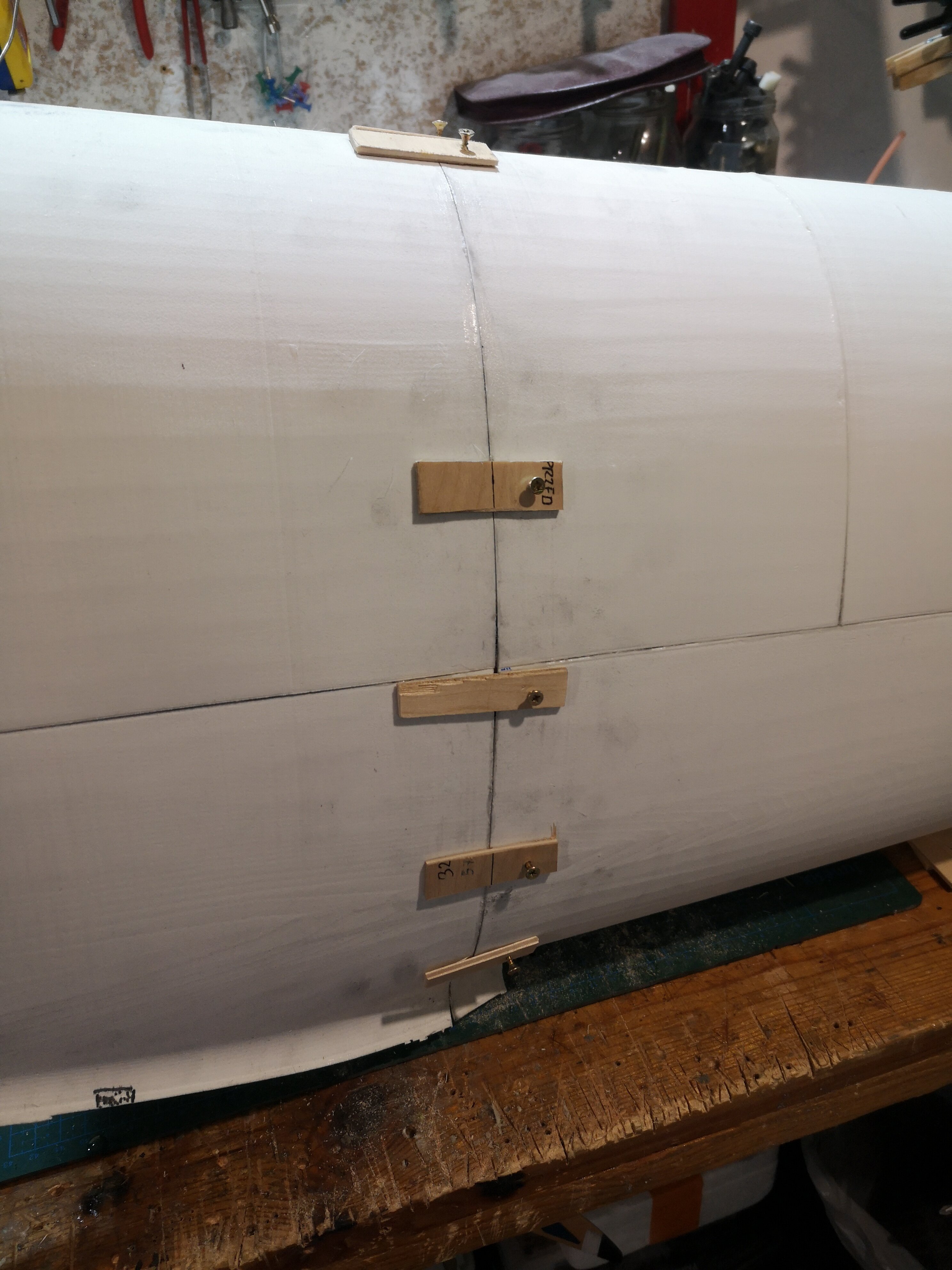 Powoli Kadłub składam w całość. Chyba największe obawy miałem z zachowaniem geometrii, ale wydruki ładnie wyszły więc nie było źle. Problem pojawił się w momencie wylaminowania segmentów I łączenia ich ze sobą. Rozwiązaniem były klamry z sklejki, do momentu przyłapana na ca segmentów, a następnie przelaminowanie łączenia I wstawienia wreg. Teraz mam pytanko co do szpachli do plastiku, ale nie do zderzaków, bo syren tak wal.... Że moja Pani z domu mnie wygoni. Czy jest coś co nie śmierdzi ???