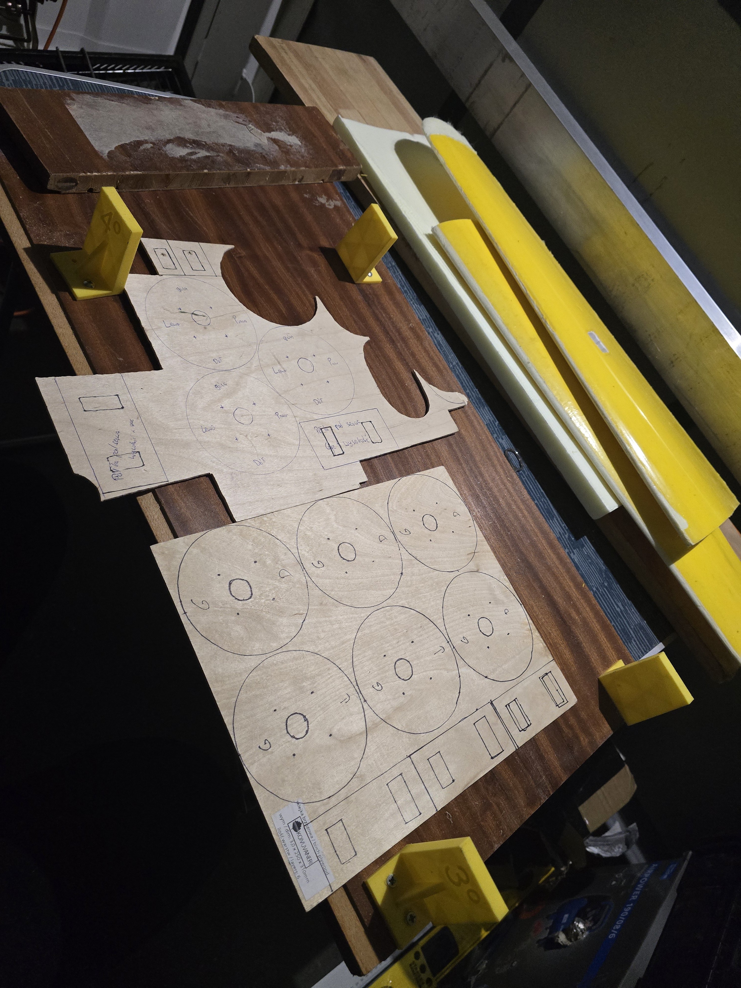 Modelarnia lotnicza mobilna ruszyła. Sklejka brzozowa 3mm. Wycinam półki pod serwo gazu i wysokości oraz wręgi silnikowe No i efekt na dziś Pierwsze dwa skrzydła na ukończeniu