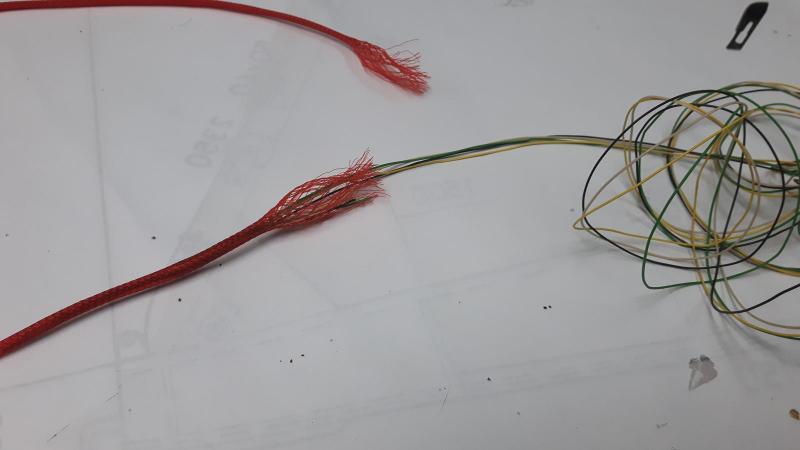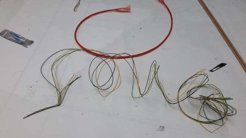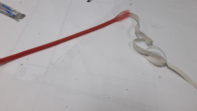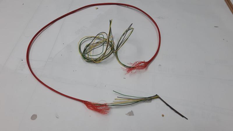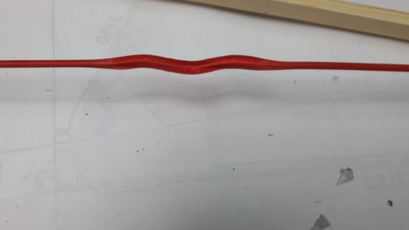 Witam Odwiedził w modelarni Stanisław położył na stole.O co to? Oczywiście poznaje to przewody L G Y 0,35 mm posłużą do przedłużenia zasilania serw. Ten czerwony to oplot pol istrowy .Potrzebuje w tym oplocie przeprowadzić dziewięć przewodów do zasilanie serw wysokości jak i kierunku.Same przeciąganie wygląda jak połykająca dżdżownica pokarm Do przeciągnięcia splotu w oplocie zasilania w kanale, belce używam termokurczki jest elastyczna. Oplot gotowy do przeciągnięcia ja po raz pierwszy spotkałem tą możliwość.Patrząc na koszty to ogromna różnica,1 m bieżący oplotu to 1 zł,przewód L G Y to 0,20 zł trzy przewody w oplocie to koszt 1,60 zł niema na rynku tańszego przewodu. Szukałem ale małe rączki mają ale inne koszty. Jak by ktoś spotkał tańszy proszę o link. Pozdrawiam Marian