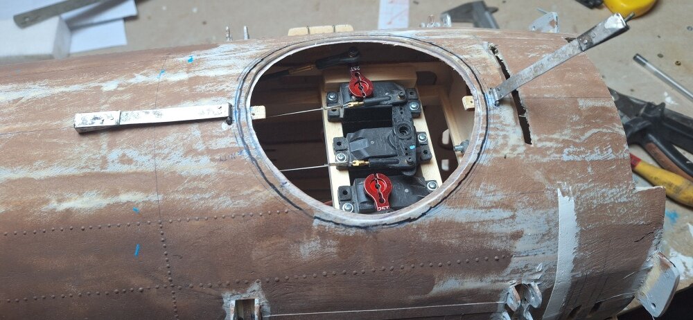 "Nitowanie" poszycia 😄 https://www.youtube.com/watch?v=d8OWyeGkIgo Przerwa świąteczna i choroba, trochę spowolniły pracę, ale coś dorobiłem. Pojawiły się osłony popychaczy steru wysokości i linek kierunku. Dorobione z cienkiej blaszki. Ster wysokości będzie na dwóch serwach, każda połówka na swoim. Niestety z braku miejsca nie mogłem zrobić "ukrytego" napędu. Będzie to chyba jedyne ( jak na półmakietę) odstępstwo od oryginału.6 punktów