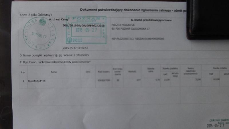 6. Na Quadcoptery stawka celna 4,7% o czym przekonałem się parę dni temu