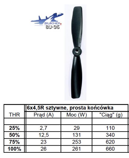 Śmigło bullnose 6x4,5R sztywne - wyniki obiecujące. Wzrost poboru prądu o 5A a i "ciąg" dużo większy. Czas przetestować w powietrzu. Regulator muszę przenieść na zewnątrz bo gorący co mogło być powodem jego zachowania jak w ostatnich lotach na śmigle 6x4E.