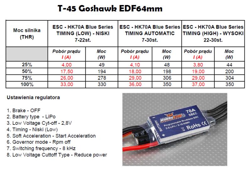 Wymieniłem regulator Redox 60A na HK70A Blue Series bo Redox budził moje pewne obawy - o tym innym razem. Poniżej tabela z pomiarami przy różnych ustawieniach timingu. Dla silników typu inrunner zaleca się ustawienia timingu na LOW. Koledzy modelarze co sądzicie o tych pomiarach?- 117 odpowiedzi