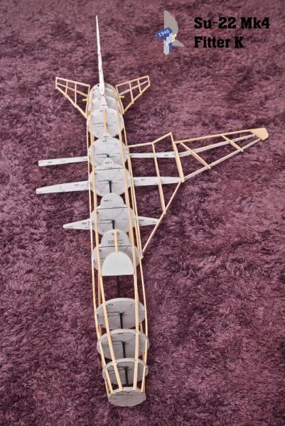Su-22 powoli (bardzo powoli) wychodzi z cienia Powstał prototyp dla zobrazowania wielkości i jako pomoc w rozważaniach na temat rozwiązań konstrukcyjnych. Wiele zmian muszę nanieść na planach przed ostatecznym wycięciem wręg i żeber. -