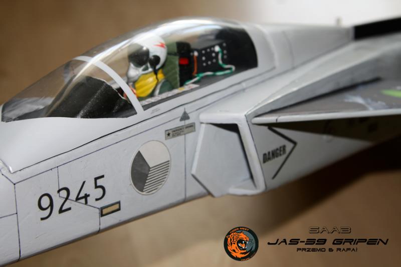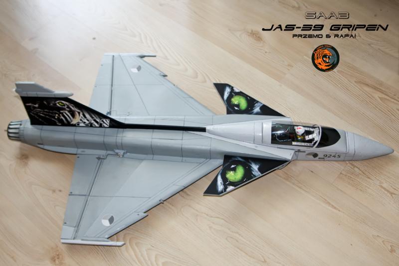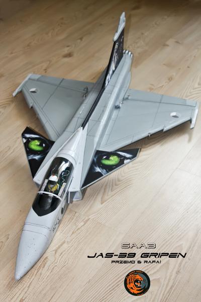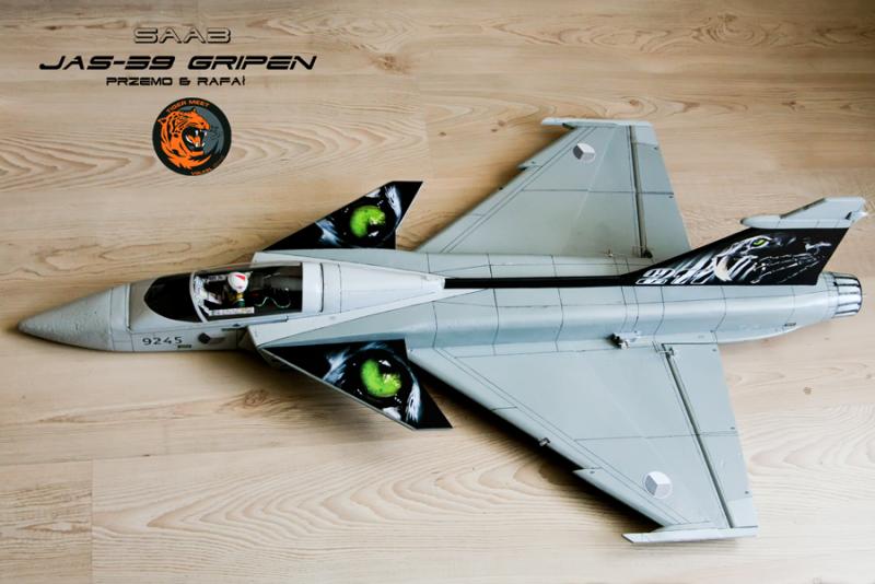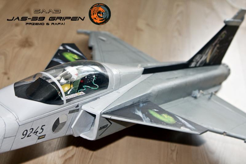 Model piękny bo przez Przema zrobiony i z elektroniką sterującą oświetleniem w Twoim wykonaniu. Ja tylko naklejki inne nakleiłem i nowe wyposażenie elektroniczne do środka dałem. Pylony podskrzydłowe zrobione - trochę pomniejszone (nie w skali) tak aby nie wystawały poza dolną część kadłuba. Podkleję je jak i rakiety na końcach skrzydeł gdy oblatam model. Na razie pogoda nie sprzyja lotom. -