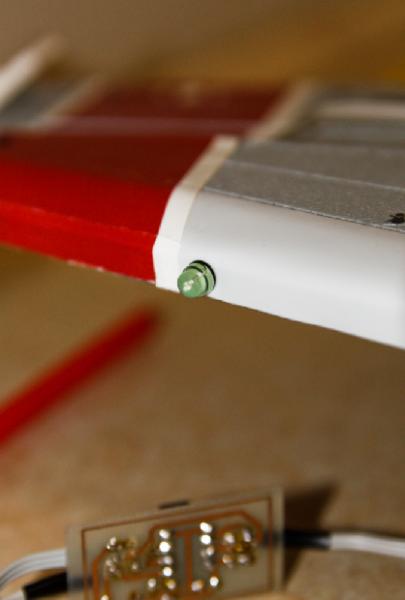 dzięki profilowi KFm2 schowałem w jego krawędzi kable od diod na skrzydłach i ... zakryłem maskownicą i kabli trochę przybyło - nie ma to jak model 3D gdzie wszystko można schować w kadłubie 2D to jednak 2D diody na skrzydłach już na swoim miejscu -