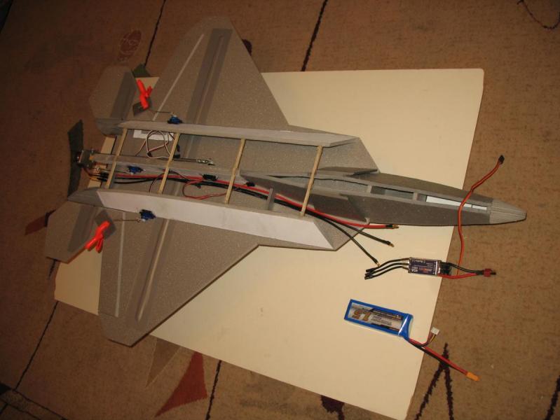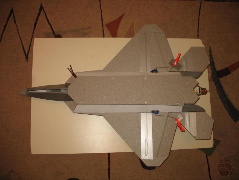 Model po złożeniu na pewno będzie prezentował się kozacko. Zamieszczam link z lotu takiego modelu zbudowanego przez mojego kolegę na podstawie planów w oparciu o które budujesz swój model. Jego F-22 nie ma zmiennego wektora ciągu. Wykonany z depronu, oklejony taśmą, piekielnie szybki i zwrotny. http://www.youtube.com/watch?v=bpEnYWhkEoI Model latał z zamocowaną kamerą jak na zdjęciu poniżej- 218 odpowiedzi