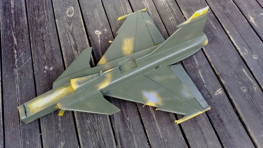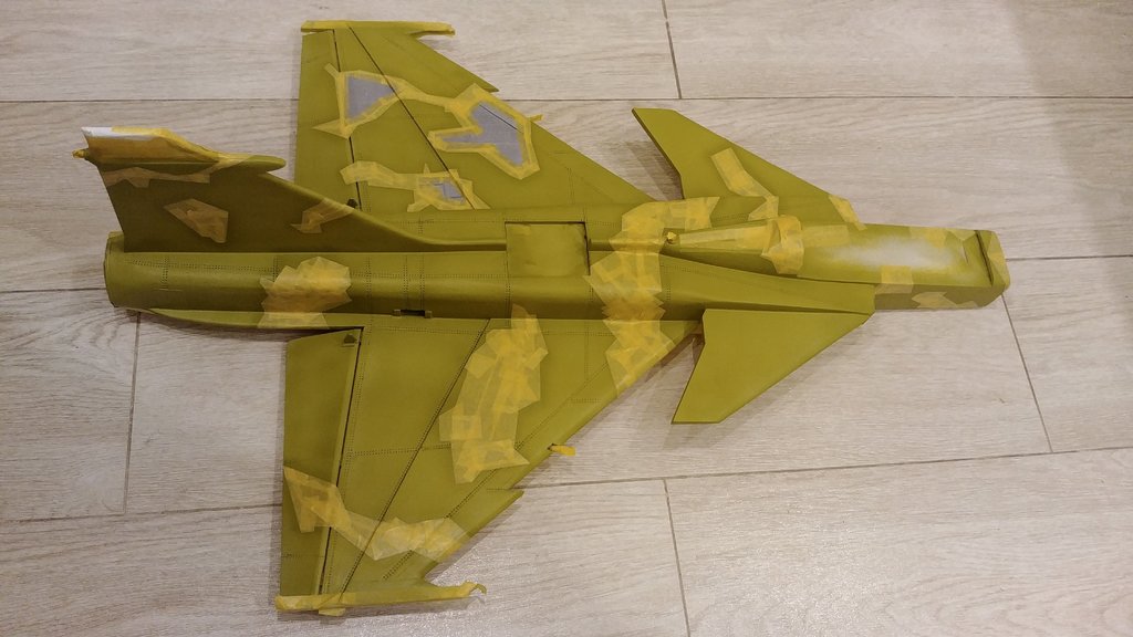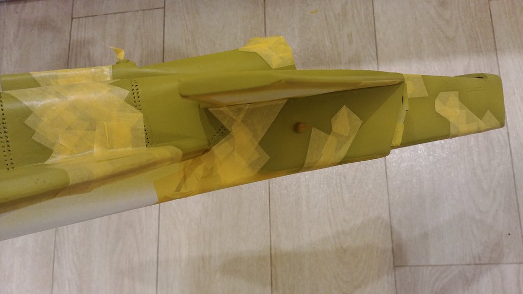 Taśmy odklejone. ? Główne malowanie zakończone. Jeszcze kilka małych poprawek malarskich, potem washing, naklejki, elektronika i na lotnisko (z podwoziem lub bez) ? ...a i jeszcze uzbrojenie (już gotowe) na zaczepach neodymowych. -