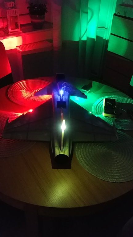 Wszystko co związane z oświetleniem polutowane. Dopalacz działa zgodnie z założeniami. Obecnie jest kolor pomarańczowo-czerwony. Zmienię soft i sprawdzę jak to będzie z kolorem pomarańczowo-błękitnym. -