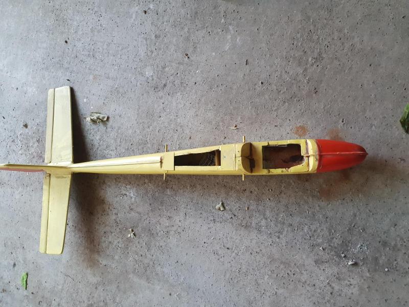 Dodaję obiecane fotki. Jest trochę do naprawienia ale jeden wieczór i gotowe będzie. Wagi pod ręką nie miałem ale sama skorupka na oko waży tyle co mój cały Edek czyli ok 500-600 gram. Wezmę do domu na naprawę to zwazę. Co do wglądu to przydała by się kosmetyka (Ale to jak się okaże że lata), wygląda jak by olejną ktoś go pociągnął a skrzydło jakimś papierem pokryte, nie wiem co to dokładnie.