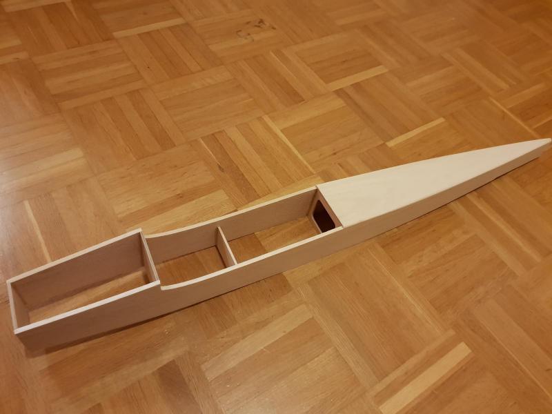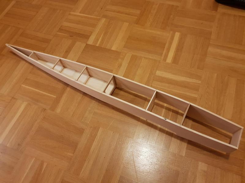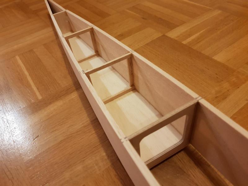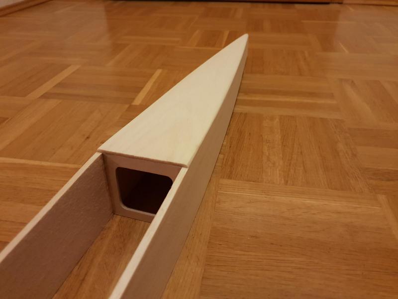 Powoli do przodu, górną pokrywę przykleję dopiero na końcu po wstępnym wyważeniu, abym miał dostęp do ewentualnego wklejenia balastu do środka. Druga połówka skrzydła też się robi, zdjęć brak bo nie ma nic ciekawego, to samo co przy pierwszej połówce.