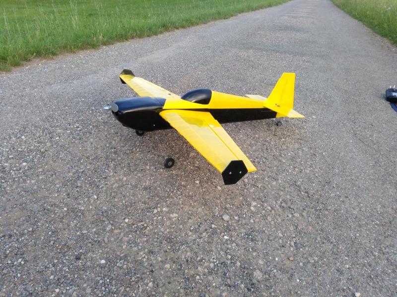 Wiaterek ucichł to poszedłem znowu polatać. Dodałem od siebie winglety, jakoś mam wrażenie że lepiej lata. Modelik potrafi naprawdę sporo (gdyby był idealnie prosty była by bajka) ale hariera potrafi zrobić normalnie (trochę nim mota i trzeba lekko się z nim podroczyć) i odwrócony na plecach, beczka akcentowa na 4 też bez problemów na nożu tak średnio (jeszcze muszę się pobawić w ść. Baterię dałem aż do domku aby nie dokładać dodatkowych gramów. Jeszcze się pobawię troszkę z większym wykłonem silnika bo jak leci pionowo to troszkę go znosi na lewo. Ogólnie powiem że model godnu uwagi i jak będe miał kiedyś więcej czasu zrobię go ponownie ale tym razem idalnie prosto