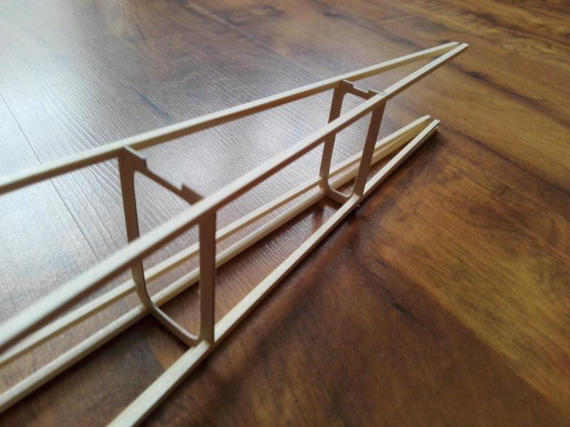 Ściągnąłem żeby sprawdzić czy wszystko idzie prosto i przy okazji do zdjęcia wyżej są fotki jak już jest cała kratownica prosto idzie Klejone oczywiście na desce Już wszystko na sucho jest