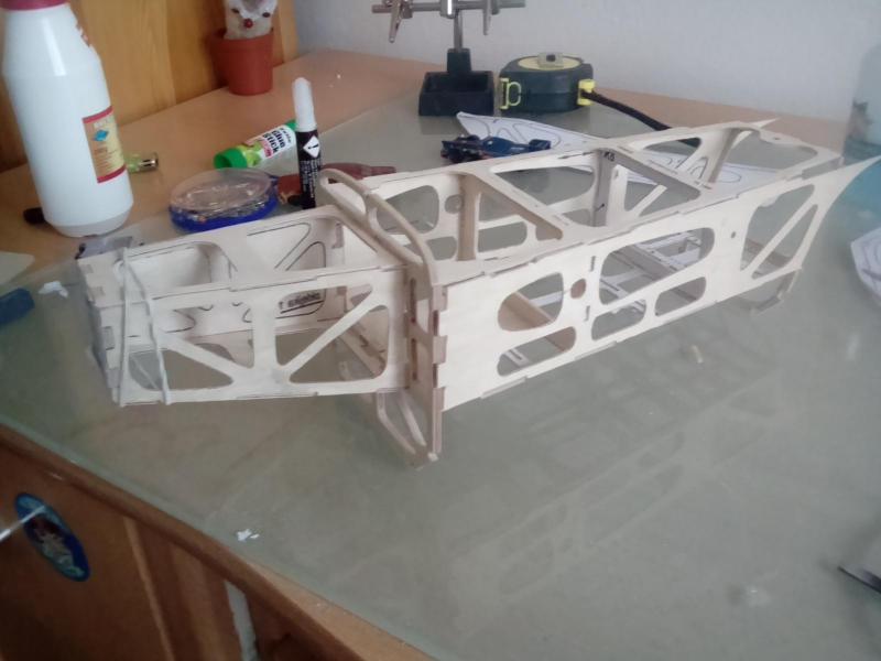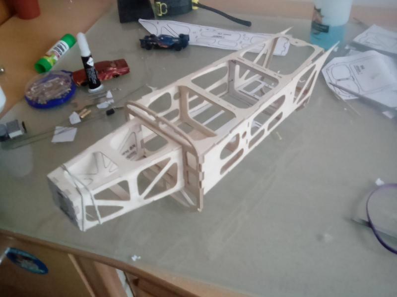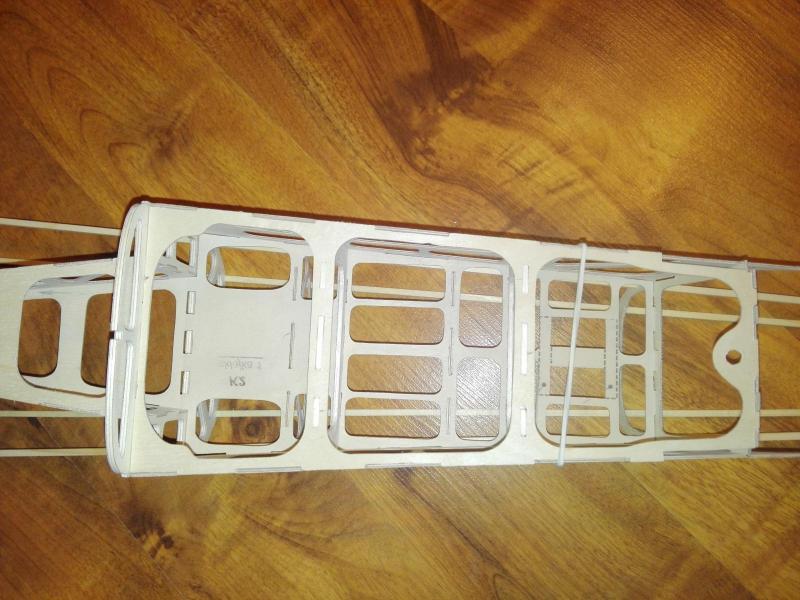 Dzięki za radę pomogła Kadłub podsechł już trochę to mogę jakieś zdjęcie dać, wcześniej i tak wszystko było poodciskane książkami narzędziami itp to nie było za bardzo go widać Na moje oko wszystko wyszło prosto (ale pewnie okaże się w locie ) C.D Klejenie idzie dalej prościutko Jestem super zadowolony. Na początku trochę się obawiałem, sklejki były lekko krzywe i szło wszystko na różne strony ale z biegiem dodawania wręg itp wszystko ładnie się prostowało