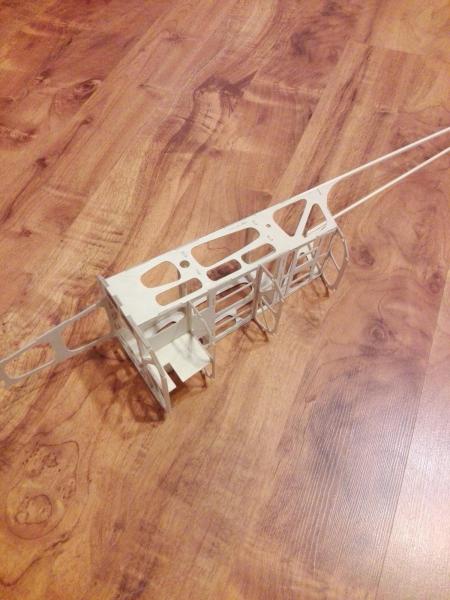 Kratownica wklejona wszystko na deseczce Zrobiłem też podwozie........ tyle brzydkich słów co wypowiedziałem (już nie mówię ile pomyślałem ) to chyba już do końca roku mam limit załatwiony . Masakra trzy razy robiłem podejście..... a to tu źle się wygięło i nie szło już wyprostować, a to pękł drut ... ale się udało nie jest super idealnie ale chyba w tych warunkach co robię lepiej nie wyjdzie.
