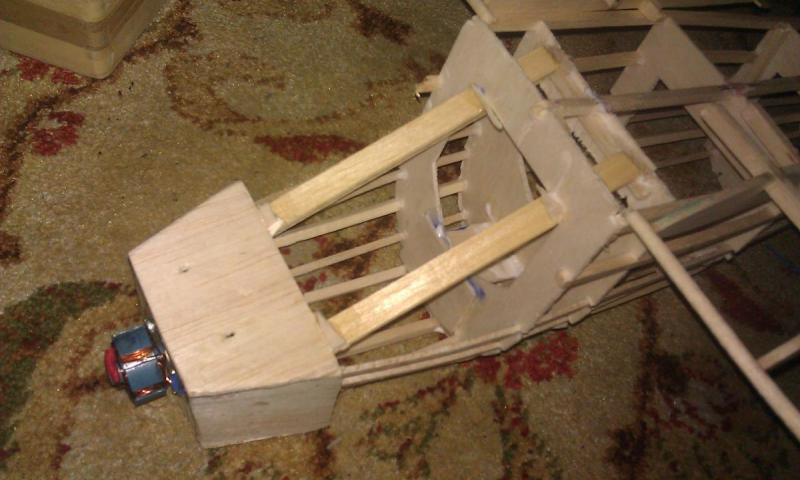 Zaczyna się odróżniać od motorówki i przypomina samolot . Waga kadłuba ze stojanem silnika - 75g. Środek ciężkości tuż za pierwszą wręgą.
