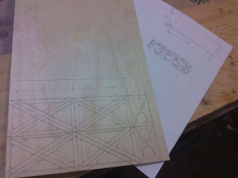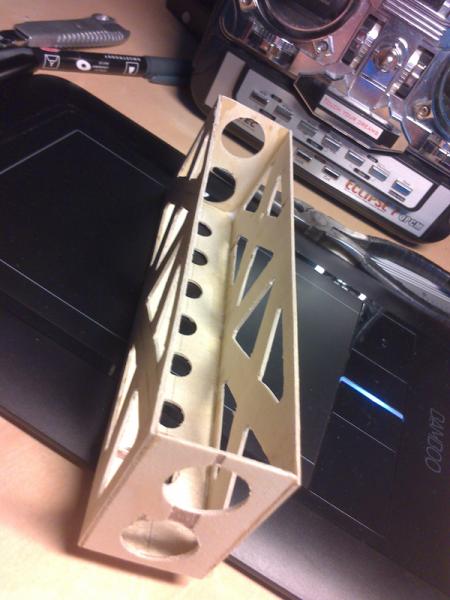 7. Klatka na pakiet. Sklejka 1mm trochę się powyszczerbiała tu i ówdzie przy obróbce, ale po zmniejszeniu rozmiaru zdjęć nie wygląda to tragicznie, jest równo i już myślę, jakby ją porządnie wkleić. Puki co plan zakłada przytwierdzenie jej na 3 poziomach: z przodu- do półki podwozia, po środku na 2 wystające oczka, przez które przejdzie tylna rurka dźwigara i z tyłu- 2 paski sklejki słojami w poprzek (gdyż będą pracować na ścinanie) ,które utworzą jakby półwręgę. Planowanie: Wycięte, sklejone- najpierw złapane na cyjanoakryl, później normalnie klejem do drewna. W kadłubie (ledwo weszła! )