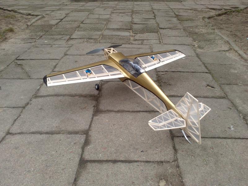 3. Oczywiście, jest w planach. Fakt, niestety cała przestrzeń pod pilotem jest tak zajęta, ze nie wcisnąłbym reszty ciała, ale przy budowie w większej skali, na przykład pod benzynę- warto rozważyć. Wtedy transparentna folia byłaby na całej kratownicy (patrz rzut z boku, pierwsze posty). Wersja dla człowieka na pewno tak będzie miała Do lotu są potrzebne w zasadzie tylko popychacze lotek i przyklejenie rzepów dla odbiornika oraz kilka wzmocnień. Plus kosmetyka typu mocowanie owiewki, może linki spinające podwozie. Dam też znać ,jak zbierze się na oblot, ale raczej pojadę na lotnisko.