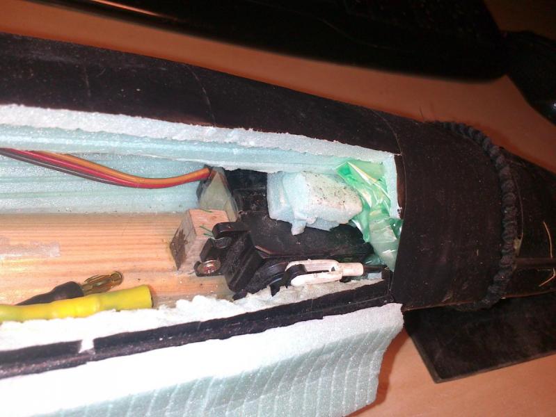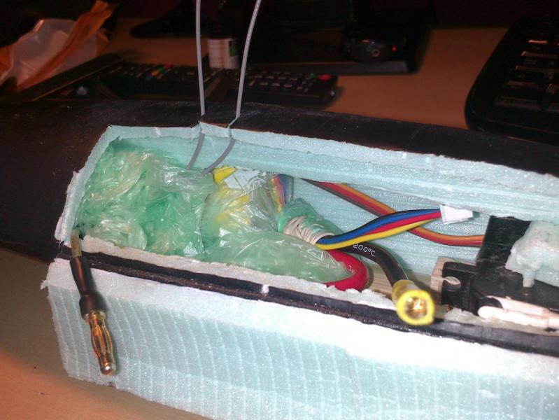 1. Generalnie cała elektronika trzyma się na wcisk i jest popakowana w worki , albo zaizolowana taśmą. Skorupa jest już trochę zmęczona, ale deproniaki to raczej jednosezonowce. Zgubiłem gdzieś 2 przycięte wkręty przy ostatniej naprawie, więc 2 "straszą" poniżej widać zmęczenia Serwo przykręcone i przyklejone Miejsce na pakiet Tutaj wszystko upakowane. Odbiornik działa jak klin mocując pakiet. Obudowa jest twarda, a wszelkie wstrząsy pochłonie i tak skorupa , więc o niego się nie boję.