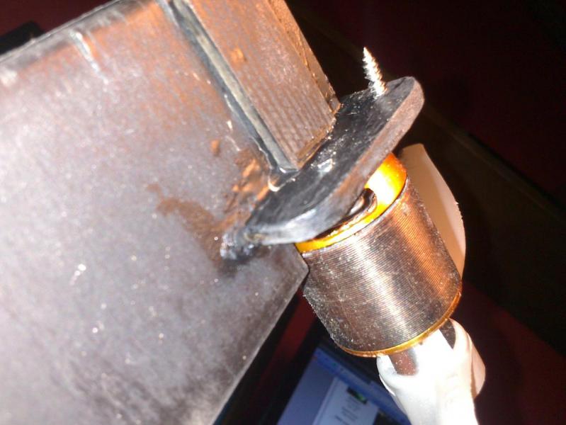 23. Otwór radzę wywiercić na początku (otwornicą dowolnego typu). Maksymalne obroty, minimalny nacisk , porządna podkładka i koniecznie "na raz" ! Później z grubsza brzeszczotem, jak zostało wyżej powiedziane- tu też radzę arkusz sklejki docisnąć do stołu ściskiem.