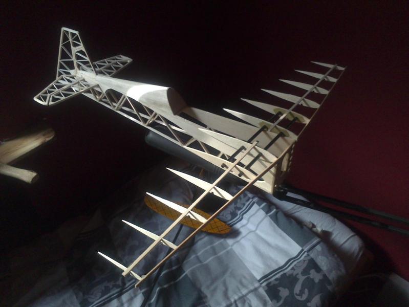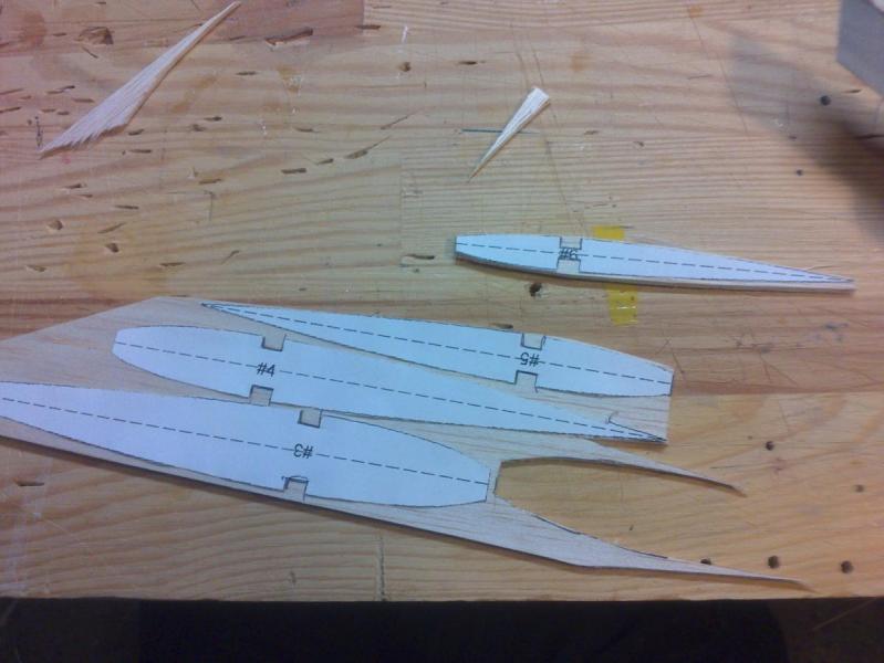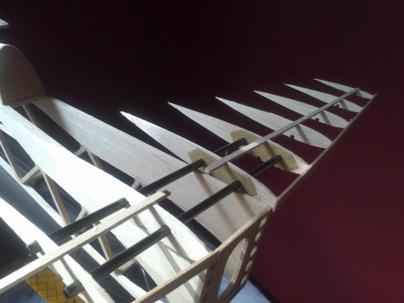 Kesony są w planie. Skrzydła dostaną też paski balsy na żebra. Ja nie wyznaję skrzydeł konstrukcyjnych bez kesonu, o to możesz być spokojny! Edit: Skrzydła maja jż wypełnienia między dźwigarami (o ile dobrze pamiętam z balsy 1.5) , kesony oraz skrzynkowy spływ. Spływ najlepiej robić tak, że wycinamy sobie 4 odpowiednie paski balsy, na dwóch zaznaczamy linię szlifu (jest w planach narysowana) następnie sklejamy ze sobą obie połówki spływu (szlifowaną i nieszlifowaną) i spinamy klamerkami. Później ,jeśli jest taka potrzeba zrównujemy końcówki żeber (odcinamy tam gzie trzeba 2-3 mm "zerowej grubości" -wiadomo- człowiek nie laser . Tak przygotowane spływy przyklejamy do żeberek (wracając ze skrzydłami na plan w moim przypadku. Można oczywiście zrobić spływ od razu.) -