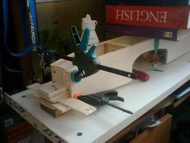 Witam. Minęło kawałek czasu. Od czasu kiedy planowałem, do dziś wykonałem już troszkę pracy nad modelem. Efekty są zadowalające. Kadłub jest w ciąż budowany, powoli:) W wolnej chwili wykonałem statecznik pionowy. Za kilka dni, zabiorę się za statecznik poziomy. Mam, małe problemy z kadłubem, ale jakoś walczę(zły pomysł na wykonanie wręg z sklejki z skrzynek po pomarańczach), są delikatnie zdeformowane. Chodź model jak na razie i oby do końca wychodzi prosty. nic nie ucieka. Będzie to kawał pancernika:) Chodź z wagą też walczę i staram się aby szła cały czas w dół a nie w górę. Liczę, że cały model nie przekroczy mi 600-700g bez osprzętu. Ale to tylko założenie, jak wiadomo bardzo często jest całkiem na odwrót niż zakładaliśmy. M52 - napisałeś, że kadłub to kawałek deski z ogonem z listewki:) No być może teraz model tak przypomina, ale jeszcze nie ma nadbudówki, która wykonam od razu po ukończeniu kadłubu.