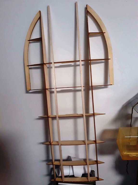 Witam serdecznie zakładam nowy temat choć jest równolegle już taki projekt wykonany w piękny sposób. Cel od dawna popchnięty przez kwarantanne i zamknięcie w mieszkaniu. Posiadanie garażu bądź domu prywatnego to zbawienie. Niestety warunki mieszkaniowe i dwójka dzieci to straszne utrudnienie. Rama wykonana ze sklejki balsowo-lipowej 3mm klejonej CA. Długość kadłuba metr. Poszycie chyba wykonam ze sklejki brzozowej 1mm bo pozostały wielki arkusz tej 3mm wydaje mi się za twardy. Boje się że za mocno będzie sprężynował przy wygięciu. Pytanie zadaje już teraz co do napędu bo nie mam w tej kwestii doświadczenia. Silnik jaki posiadam jest podobny do poprzednika lecz.... no własnie. KV: 2000, Zasilany 2x6S 6000, Max: 86A. Jaka średnica i skok śruby koło 50, 60 czy 70 bo nie mam pojęcia. Oczywiście wał dobiorę grubością w zależności od wielkości śruby. Ster mam 160mm więc powinien wystarczyć. Jeżeli ktoś jest z okolic górnego śląska i zajmuje się łodziami był bym wdzięczny za jakąś mądrość życiową. -