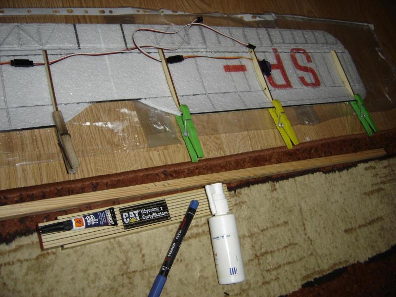 Zdjąłem mu 30 gram, waga do lotu 660 gram. I póki co tak zostanie, gdybym chciał ją zmniejszyć, muszę rozpruć mu z jednego boku folie, i serwa zamontować jak najbliżej przodu, jedne przy drugim. i ewentualnie zastosować serwa 5 gramowe, a zakupiłem kilka takich, bo może w następnym tygodniu zlepię RWD13 z serii Na polskim Niebie autorstwa naszego kolegi z forum . -