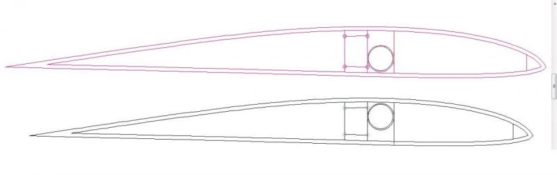Jestem w trakcie budowy pewnego modelu (rozpiętość ~4m, cięciwa przy kadłubie 28,5cm). Na etapie rysowania żeberek natknąłem się na mały problem, a mianowicie problem z umieszczeniem łącznika, będzie to pręt stalowy 12 lub 13mm. Lecz nie mieści mi się on pomiędzy dźwigarami w taki sposób, aby nadać skrzydłom odpowiedni wznios. Czy mogę umieścić go w taki sposób jak na rysunku (pierwsze i ostatnie żeberko z łącznikiem)? Oczywiście rurka będzie zabudowana w skrzynkę i owinięta razem z dźwigarem nicią. Nie sprawi to żadnych kłopotów. Aha, skrzydło to konstrukcja klasyczna kryta całościowo balsą 2mm. PS. może doradzicie jeszcze coś w sprawie dźwigara? Chciałem zastosować 5x12mm sosna na dźwigar górny i dolny z wypełnieniem balsowym, ale dopiero teraz zauważyłem, że może być problem z dostaniem takich listew, a nie chciałbym kleić np 4 sztuk se sobą dla uzyskania odpowiedniego przekroju.