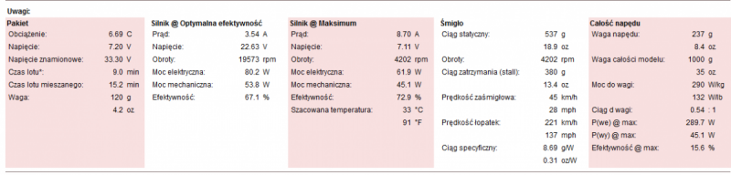 Znalazłem taką oto tabelkę dotyczącą tego silnika: Zalecają w niej śmigła 10x4,7 oraz 11x3,8, prądy max odpowiednio 15A i 18A. Ja chciałbym założyć śmigło składane 11x6. Jaki będzie prąd maksymalny w stosunku do śmigła 11x3,8? Wydaje mi się, że większy. A jeśli większy, to czy regulator na 25A wytrzyma to?
