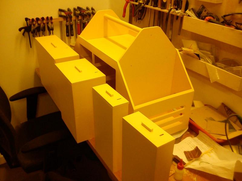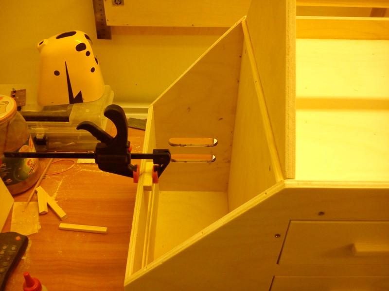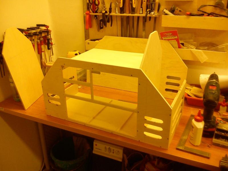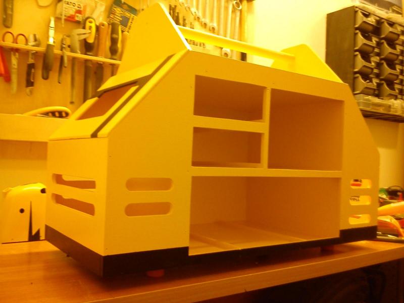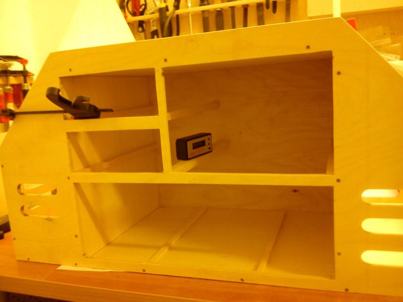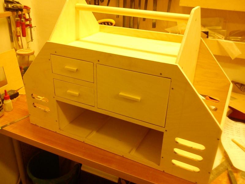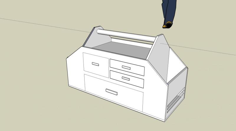 Witajcie Jakiś czas temu postanowiłem zrobić nową skrzynkę startową. Po przejrzeniu różnych projektów na naszym forum oraz galerii google postanowiłem, że czas wziąć się za robotę... Priorytety były trzy tzn. duża pojemność, wytrzymałość i max ilość szuflad - nie zwracałem uwagi na ciężar całkowity. Skrzynka wykonana jest ze sklejki gr. 8mm (konstrukcja skrzyni i fronty szuflad) oraz 4mm (dno szuflad, panel zasilania). Na skrzynkę wykorzystałem 1,87 m2 sklejki gr. 8mm oraz 0,28 m2 sklejki gr. 4mm. Gdybym miał dostęp do sklejki gr. 6mm możliwe , że zastąpiłbym moją sklejkę 8mm. Całkowite wymiary skrzynki to 650mm dł. x 300mm szer. x 430mm wys. Prace rozpocząłem od wykonania rysunku poglądowego w Sketchupie. Całość konstrukcji jest sklejana klejem wikolopodobnym , nawiercana , i skręcana małymi wkrętami. Nóżki gumowe kupiłem w Brico. Zatrzaski szuflad to nic innego jak modelarskie zatrzaski kabiny. Panel zasilania gotowy firmy Qmodel z wbudowaną pompą paliwa. Pozdrawiam