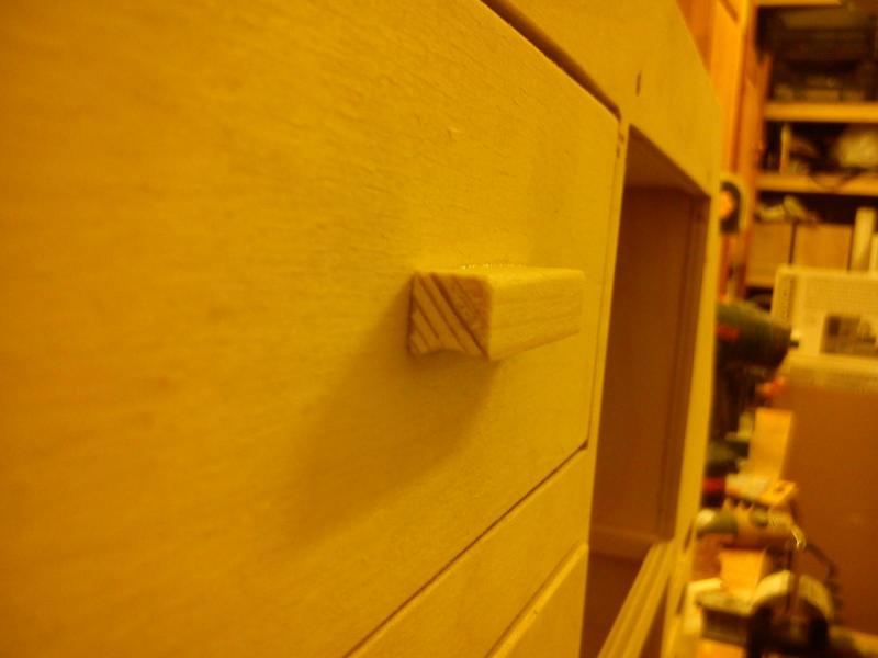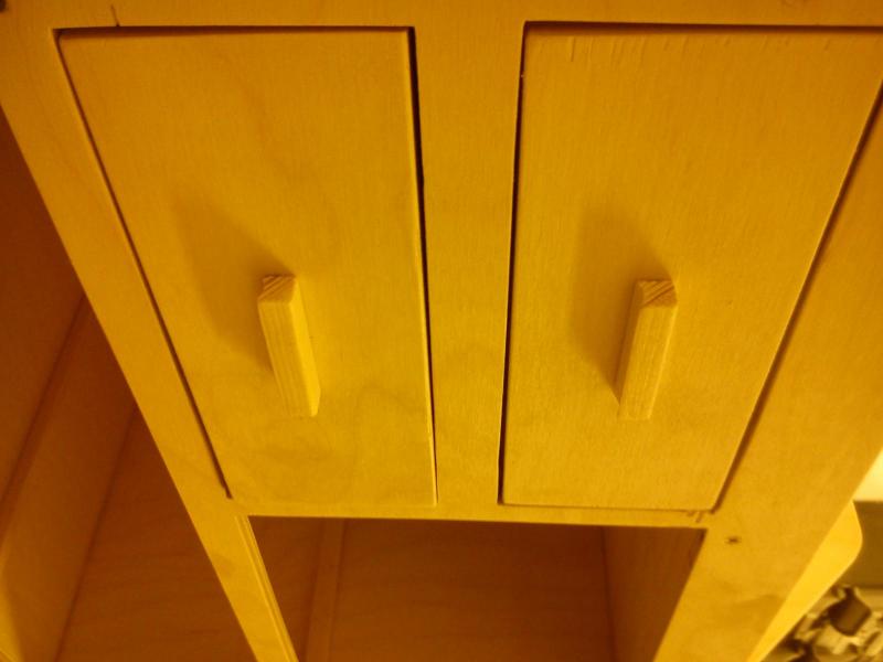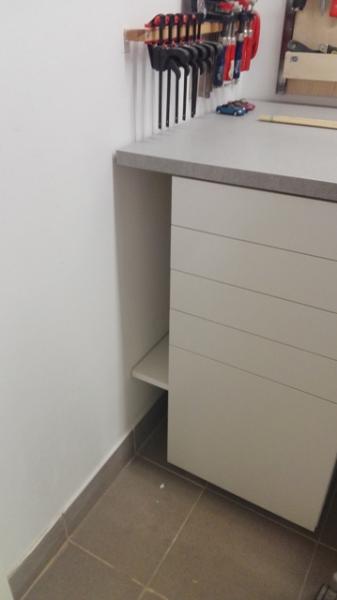 Jakościowo jest naprawdę ok. Wszystko jest z laminowanej płyty wiórowej (system METOD) za wyjątkiem dwóch frontów od szuflad nad nogami z systemu (USTUVA) czy jakoś tak ,są z lakierowanego mdf-u. Dlaczego takie fronty? Pamiętaj ,że miedzy nogami front szuflady nie może nachodzić na grubość płyty bocznych szafek bo nie otworzysz bocznych szuflad lub szafki. Mam nadzieje ,że w miarę jasno to opisałem:) Chodzi mi o to, że w systemie METOD fronty nachodzą na krawędzie skrzyni a skoro między nogami nie montujesz skrzyni tylko bezpośrednio kręcisz prowadnice do boków sąsiednich skrzyń to fronty nie mogą nachodzić na 18mm skrzyni sąsiedniej. Bardzo zadowolony jestem z szuflad ,które są z grubej blachy i mają naprawdę grube dno z płyty wiórowej ok 1 cm. Mam całą szufladę wypełnioną otwornicami i wiertłami, które ważą sporo i zupełnie nic się nie ugina. Druga rzecz ,z której jestem zadowolony to blaty także z laminowanej płyty wiórowej na których dużo lutuję i niejednokrotnie były traktowane i acetonem i nitro i nic się nie dzieje. Nawet nie zmatowiały. Uchwyty do szuflad jakie zastosowałem to aluminiowe GAMET UA02 z allegro.