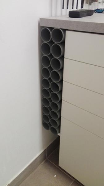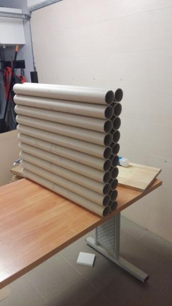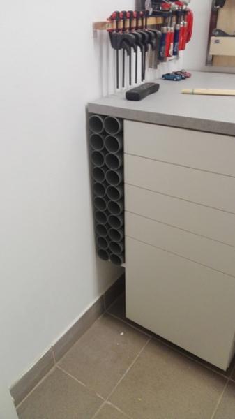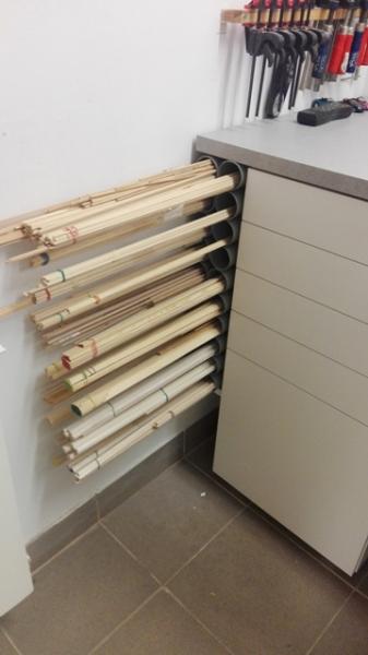 Dziękuję... większość czasu wynajmowałem dużą wózkownię w bloku i tam przez wiele lat miałem swoją modelarnię a w samo pomieszczenie nie chciałem inwestować... Tak dosyć tanio dlatego , że nie brałem ciętych na wymiar tylko gotowe dł 186 cm i 243 cm http://www.ikea.com/pl/pl/catalog/products/90335640/ oraz http://www.ikea.com/pl/pl/catalog/products/90335640/#/30335643. Dokładnie wyszło 2x 179zł + 1 x 199zł = 557zł za 6,18m Blaty oczywiście sam przyciąłem na potrzebny wymiar. A dokładnie tylko jeden blat był cięty. Do blatów załączona jest gruba okleina na krawędzie w kolorze. Co do listewek ... pierwotnie miały być z drugiej strony zabudowy ale tam trzymam długie deski montażowe. Z pewnością dostęp byłby znacznie łatwiejszy. Ostatecznie przyciąłem wszystkie tuby z 80 cm na 60 dzięki czemu nie mam problemu z wysuwaniem ich ... Max listwy jakie mogę włożyć to 120cm. Ale muszę przyznać , że masz dobre oko:)