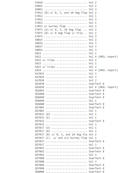 Wyglada na to, ze pomylili nazwe, po prostu pomylka. Ponizej jest fragment alfabetycznej listy wszystkich testowanych przez nich profili. http://m-selig.ae.illinois.edu/uiuc_lsat_airfoilsTested.html#lists A stad mozna sciagnac (ZA DARMO!) wszystkie dane profili testowanych przez Selig'a: http://m-selig.ae.illinois.edu/uiuc_lsat.html