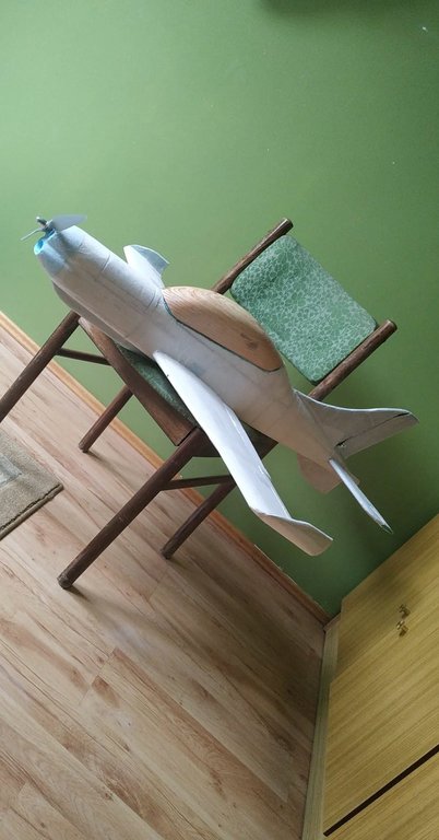 W skrzydłach są dźwigary sosnowe, dodatkowo wszystko oklejone papierem na wikol. Podwozia nie będzie, nie mam na to warunków na moim "lotnisku"