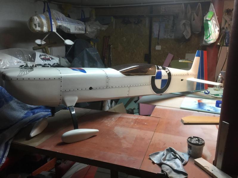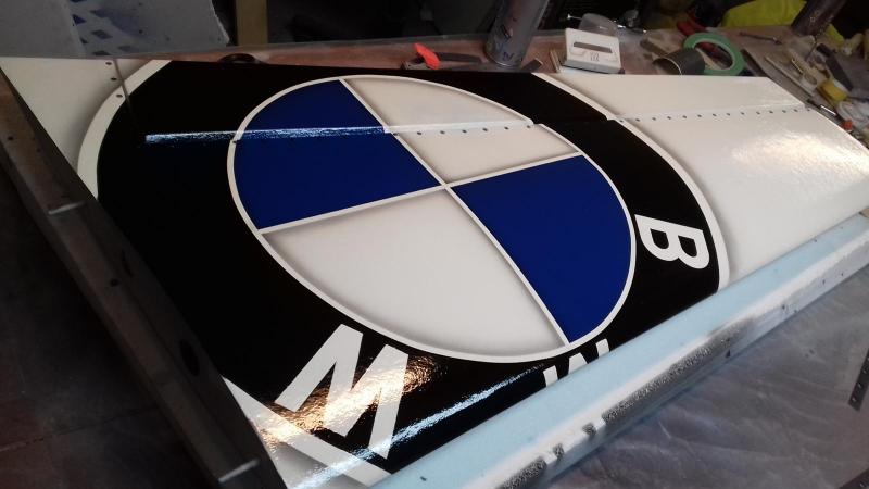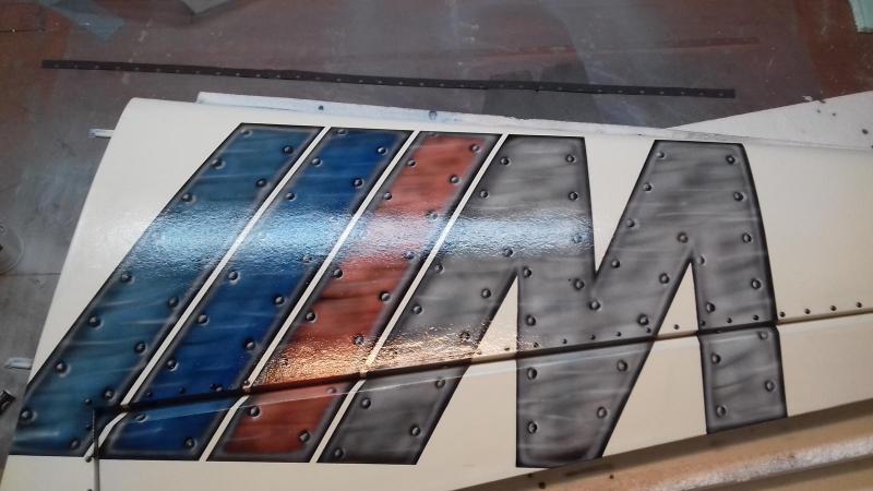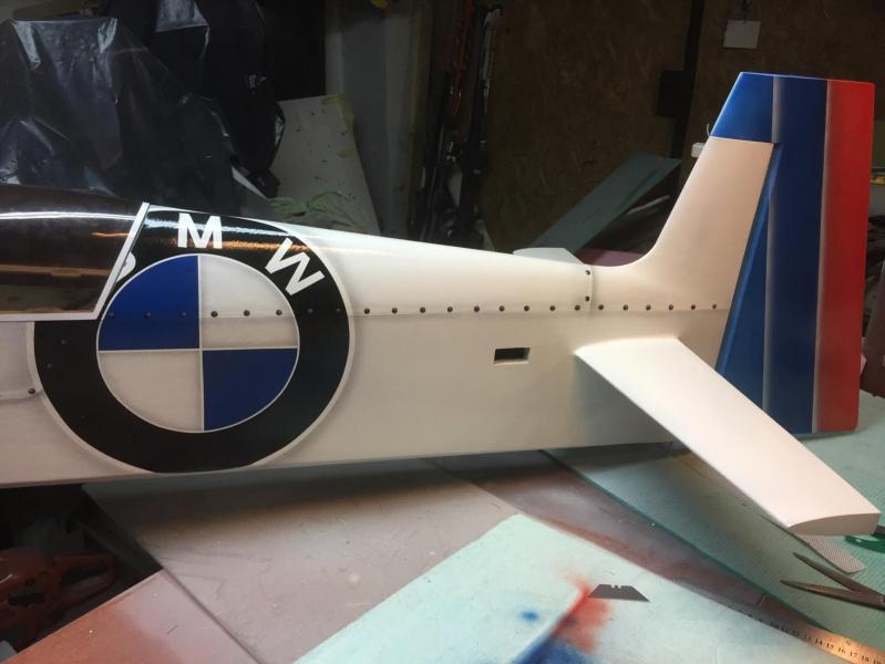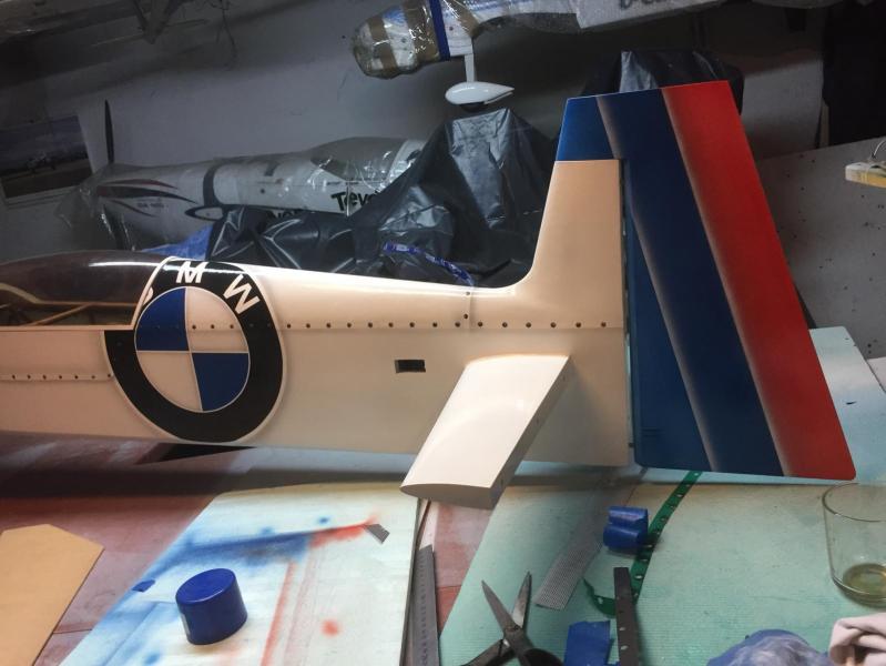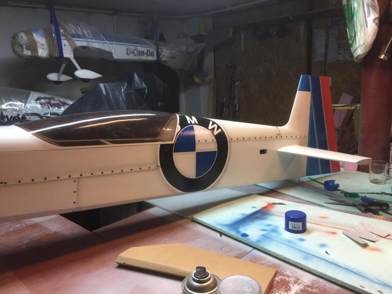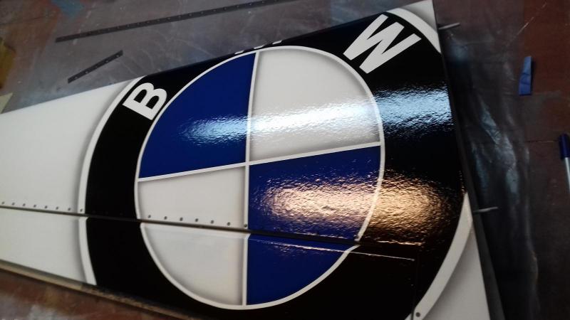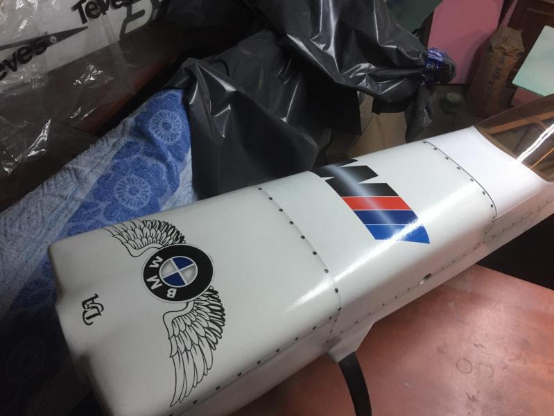 Bogdan wpadnę do was na lotnisko to będziesz mógł focić do woli, a co do kabiny, to faktycznie jest bardziej z tyłu. Gotowy model do lotu, nie mam pojęcia ile będzie ważył, podam wagę na końcu, a co do malowania to np. logo BMW czy M pakiet wyklejam taśmą malarską obrys i maluje, nity robię przykładając szablon, a reszta to już od ręki, cienie, przetarcia itd. -
