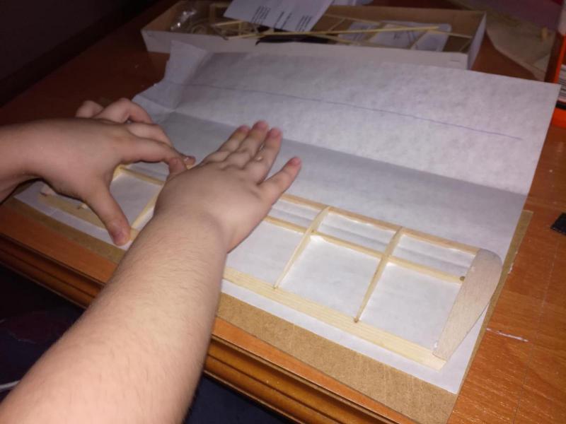 15. Bez tego by się nie obeszło .A jak przywali w ziemię to ta sama mowa [no nie znowu] Ciąg dalszy budowy.MŁODZIK-98 Nie obeszło się bez małej pomocy przy kawałkach balsy jakie były w zestawie do budowy skrzydła musiałem mu pomóc w oszlifowaniu i dopasowaniu do żeberek. Kilka zdjęć na których widać że model ma prawie na ukończeniu.