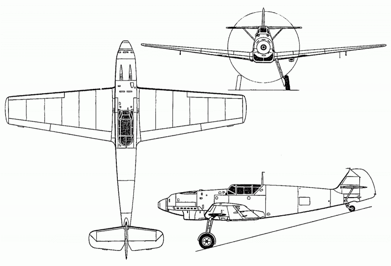 Wziąłem rzuty bf'a wersji D przeskalowałem do rozpiętości 120 cm: Potem rzut boczny naniosłem na zdjęcie i wyszło coś takiego: