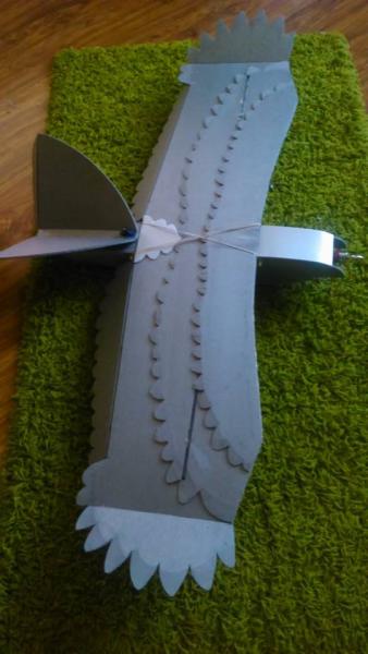 Wyrysowałem nowe blachy do skrzydeł. Udało się je wyciąć u taty w pracy więc nie musiałem się bawić ręcznie. Założyłem na próbę i jak na razie wszystko pasuje prócz jednego łącznika który wyszedł za długi o jakieś 5 mm. Teraz model jest gabarytowo "taki jaki powinien być" Nie taki mały wyszedł Masa tego co na zdjęciach ok 1000g