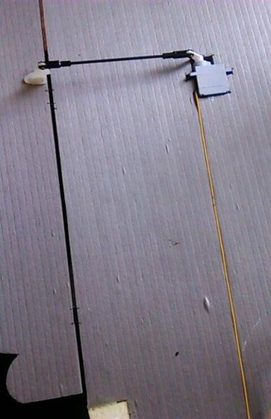Serwo jest wklejone na 1/2 długości lotki. Wpuszczone w pierwszy i drugi "schodek" Skrzydła Popychacz z 2mm węgielka.