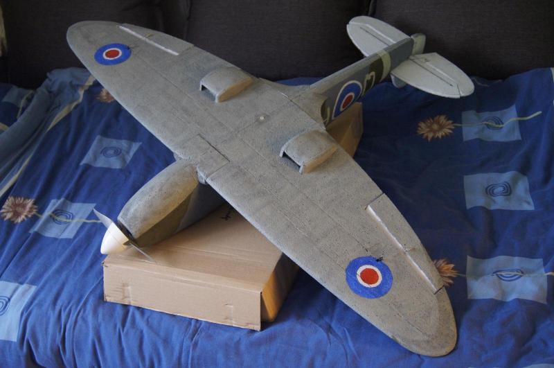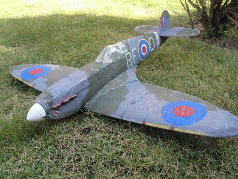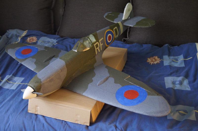 16. Spit bliski ukończenia zostało mi trochę malowania, zrobienie podziału blach, przyklejenie kabinki i wydechów i docięcie kołpaka pod śmigło: Tak sobie to wyszło ale mówi się trudno