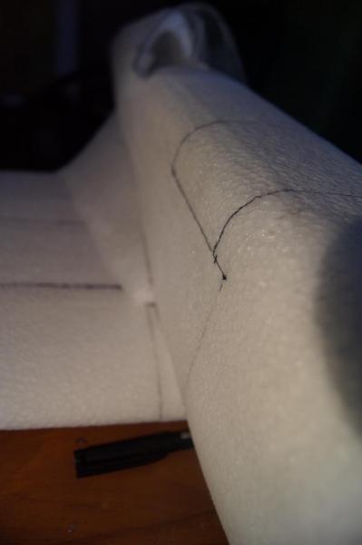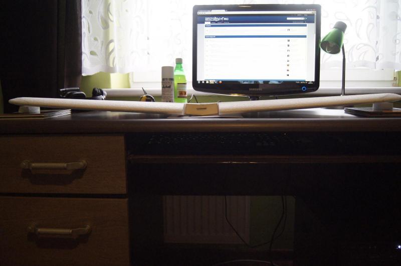 22. Skrzydło prawie skończone. Dostało lotki jutro wkleję brakujący węgiel od spodu oraz mocowanie śruby Wypaliłem miejsce na serwa i złączkę przedłużacza Koniec na dziś.