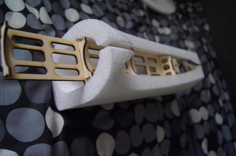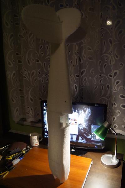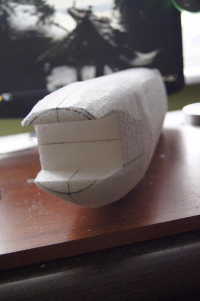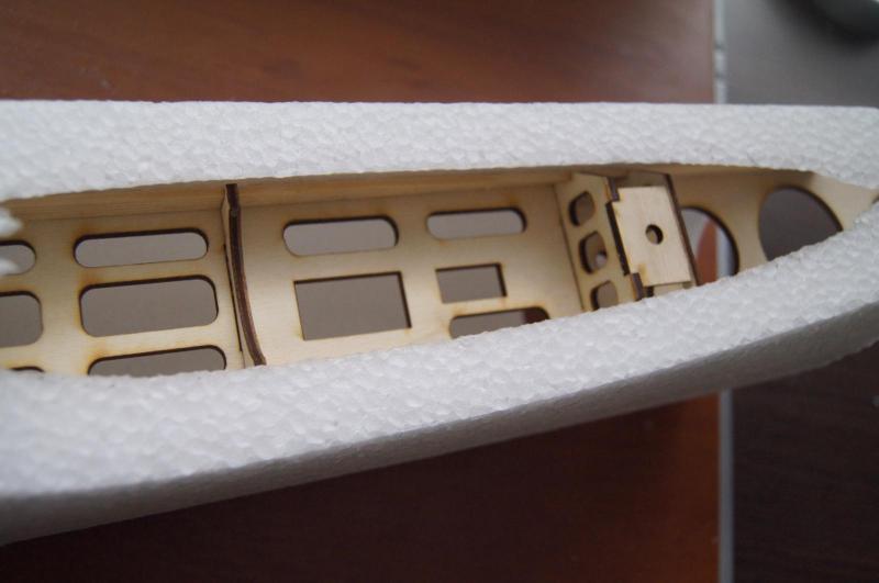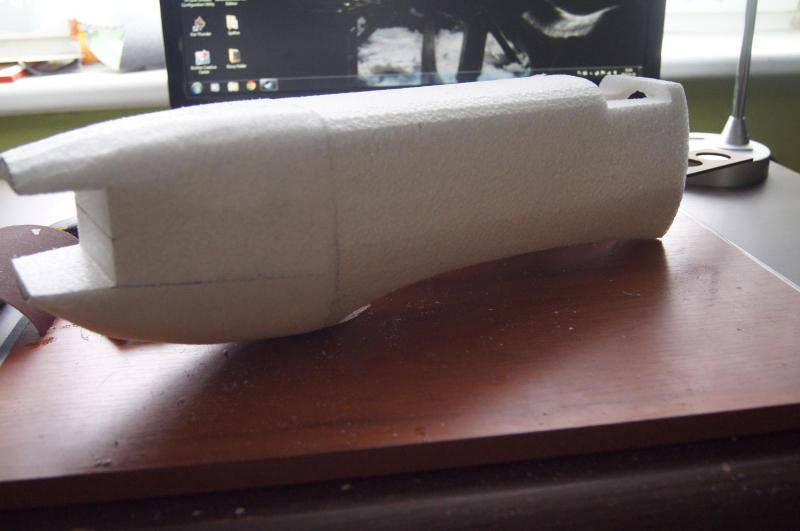 6. Wczoraj wieczorem wydrążyłem przednią część kadłuba: Dzisiaj z rana zabrałem się za łączenie przedniej i środkowej części kadłuba oraz zacząłem skrobanko maski jeszcze trochę szlifowania potem żelazko i będzie można zabrać się za tył