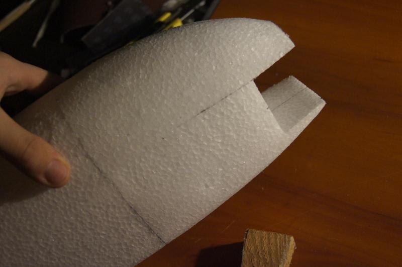 17. Kolejny dzień....kolejne zdjęcia Wkleiłem serwa w skrzydła: potem schowałem kable: Połączyłem kadłub ze skrzydłem i zabrałem się za dłubanie w kadłubie zrobiłem przejście kadłub-skrzydło Zostało do zrobienia niewiele. Na tygodniu zakupię silnik i regulator i jak pogoda będzie sprzyjać w sobotę/niedzielę oblot