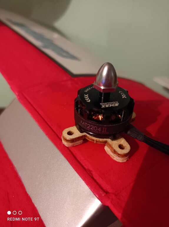 No FC skończony. W nowwj wersji FC silnik mocowany jest przed wręgą, w związku z tym potrzebna jesta podkładka dystansowa aby silnik wystawał przed maskę. Mój to EMax GT 2820/06 serwa to budżetowe Power HD-1900A. Za to regulator Ray 80 A. A tak się prezentuje w finale: Może jeszcze dzisiaj poleci.