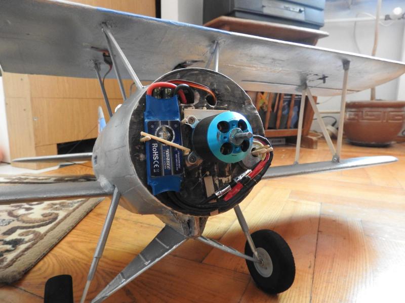Dokończyłem oblot PWS-a. Dobalastowałem dziób, zwiększyłem nieco skłon silnika i zwiększyłem wychylenia sterów. W modelu zastosowałem profil Clark Y i aby nie robić nienaturalnego skłonu silnika płaty i usterzenie ustawiłem pod kątem ok. +3 st. w stosunku do osi podłużnej samolotu. Model ładnie leci z lekko opuszczonym nosem co ładnie wygląda. Płat górny w stosunku do dolnego -1 st. W profilu Clark Y za cięciwę wyjściową biorę dolny obrys profilu. Dołączam zdjęcie "firewall" i link do drugiego dnia oblotu.https://www.youtube.com/watch?v=FiplVyPcZj4