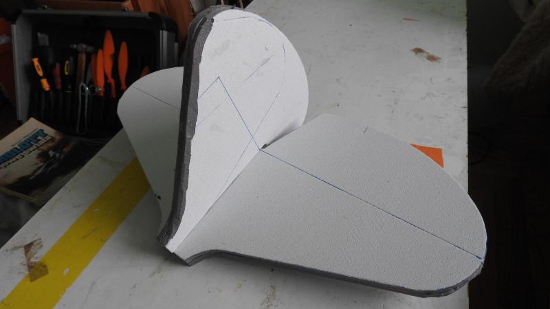 Mniej więcej tak to wygląda z tym że stateczniki to nie decha bo narobiłem się przy nich jak Dunikowski czy inny Fidiasz, rzeźbiłem i piłowałem papierem aby nadać im zbieżność na rozpiętości i profil NACA-podobny.