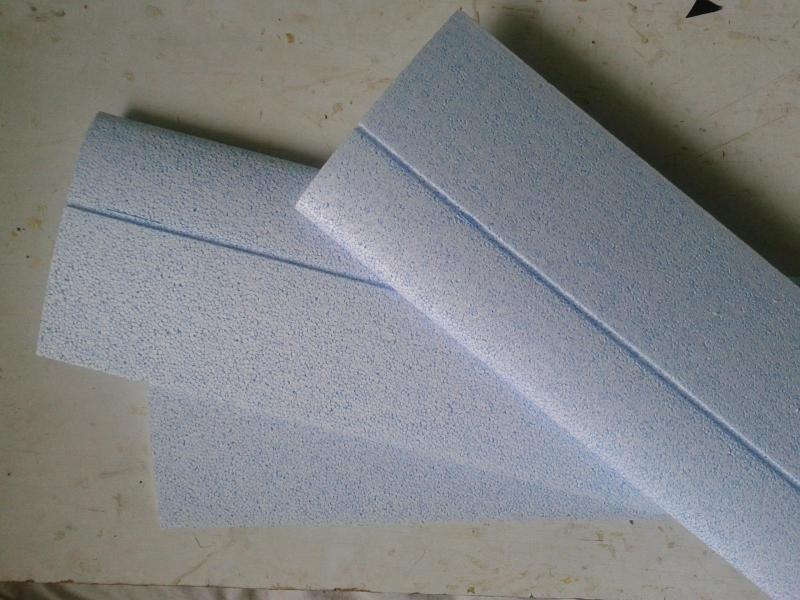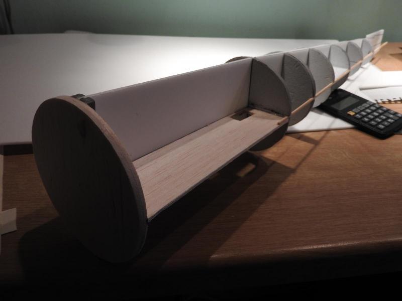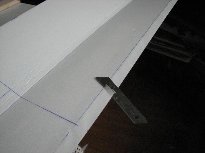 W książce naniosłem wymiary z rysunku x0,85, w rzeczywistości przyjąłem współczynnik 0,9. i model stał się metrowy. Skrzydła zrobiłem z jednego giętego pasa depronu. Profil 10% w założeniu p/w clarkopodobny, a w rzeczywistości CRD. Zastosowałem cienki profil aby uniknąć wędrującego środka parcia i upodobnić do oryginału. Pełny profil na 80% rozpiętości natomiast końcówki spłaszczone.