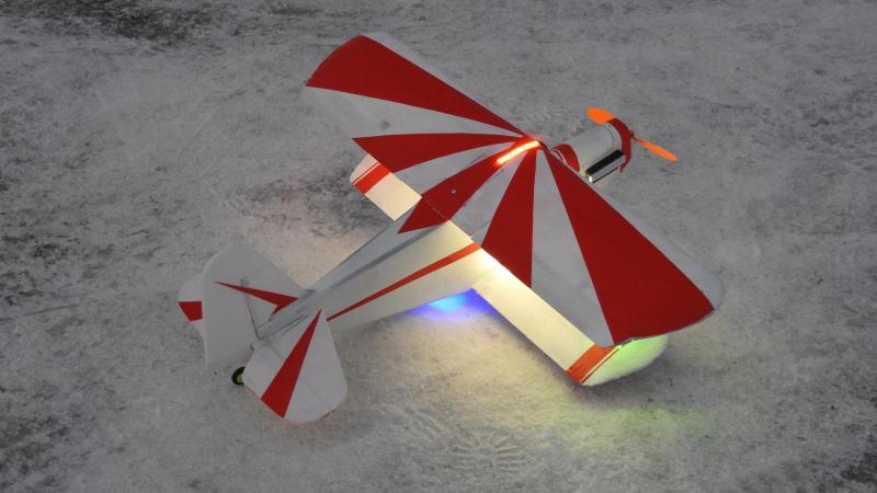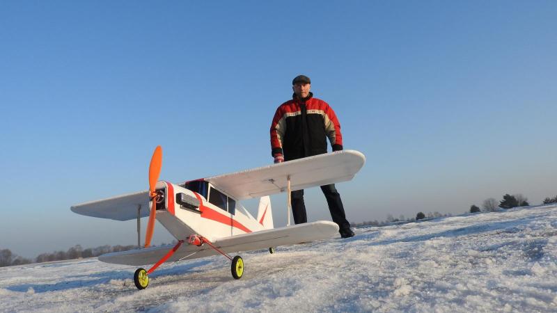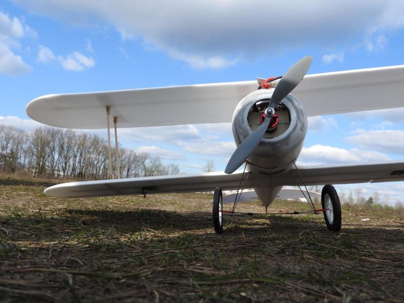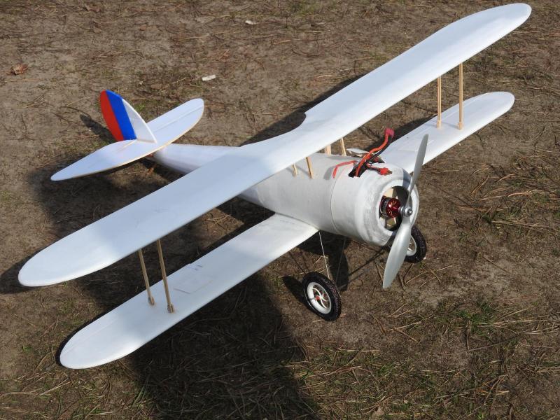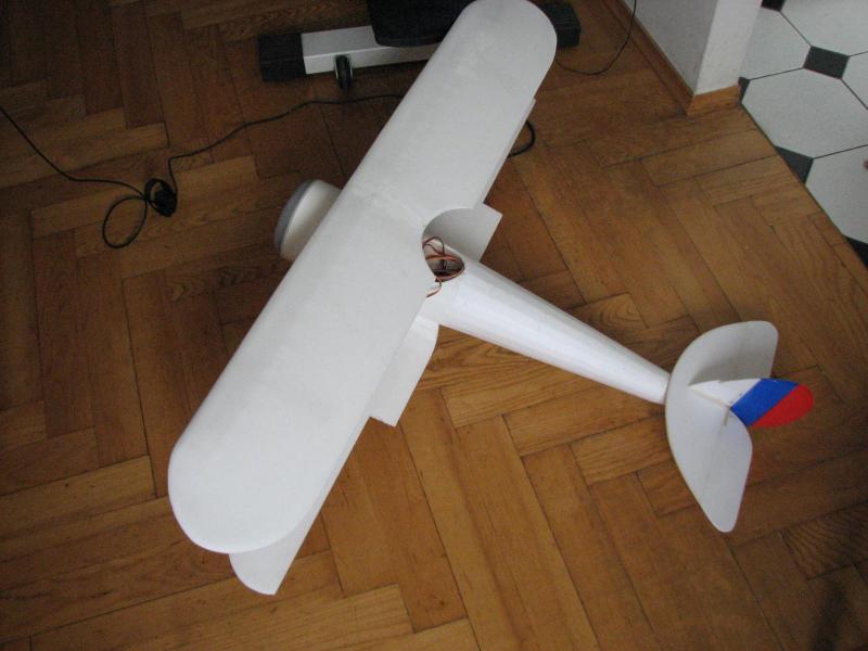 Podczas zimowego remontu dokonałem przebudowy swojego dwupłata. Zyskał na rozpiętości, zmianie uległy kąty zaklinowania skrzydeł i kadłub zyskał na wielkości dzięki czemu model może już latać na żyletę. Zmieniłem obrys stateczników i proporcje sterów (powiększone) oraz ramie statecznika zwiększone do 220 mm (10%). Model nawet na plecach lata bez przy puszczonych drągach.